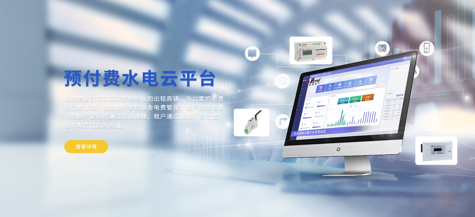 安科瑞提供的解決方案包括Acrel-EIoT能源物聯(lián)網(wǎng)云平臺變電所運(yùn)維云平臺安全用電管理云平臺環(huán)保用電監(jiān)管云平臺智慧消防云平臺能源管理云平臺、工業(yè)企業(yè)能源管控平臺、遠(yuǎn)程預(yù)付費(fèi)云平臺餐飲油煙監(jiān)管云平臺電動汽車/電瓶車充電樁收費(fèi)管理云平臺、電力監(jiān)控/無線測溫系統(tǒng)、電能質(zhì)量治理系統(tǒng)、電氣火災(zāi)監(jiān)控系統(tǒng)消防設(shè)備電源監(jiān)控系統(tǒng)防火門監(jiān)控系統(tǒng)應(yīng)急照明和疏散指示系統(tǒng)、智能照明控制系統(tǒng)、醫(yī)用隔離電源絕緣監(jiān)測系統(tǒng)等,幫助用戶實現(xiàn)能源智能化、可視化、精細(xì)化管理,提高用能效率和用能安全,為企業(yè)節(jié)能降耗和實現(xiàn)能源數(shù)字化建設(shè)提供數(shù)據(jù)服務(wù)。